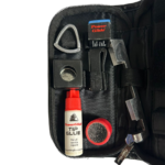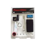 Clam packed accessory kit containing; magnetic chalk holder and belt clip, cue wrapper pad, cue tip trimmer, cue clamp and locking ring, 2 pieces of chalk, cue tip cement, 6 spare tips.