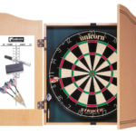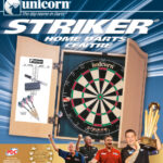 - Striker bristle dartboard with SuperSlim™ wire fasteners and staple-free Bullseye