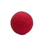 A rubber ball covered in red felt with a cricket seam