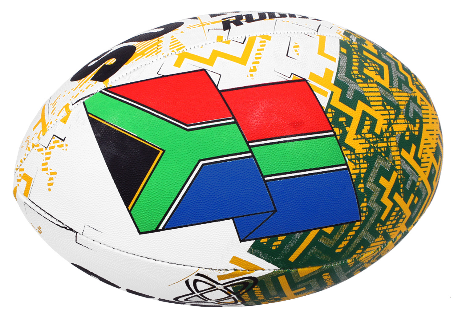 SA Flag Supporters Ball with a synthetic outer and original feel. The rugby ball is a great recreational ball. Soft synthetic rubber, machine stitched and with designs to stand out.