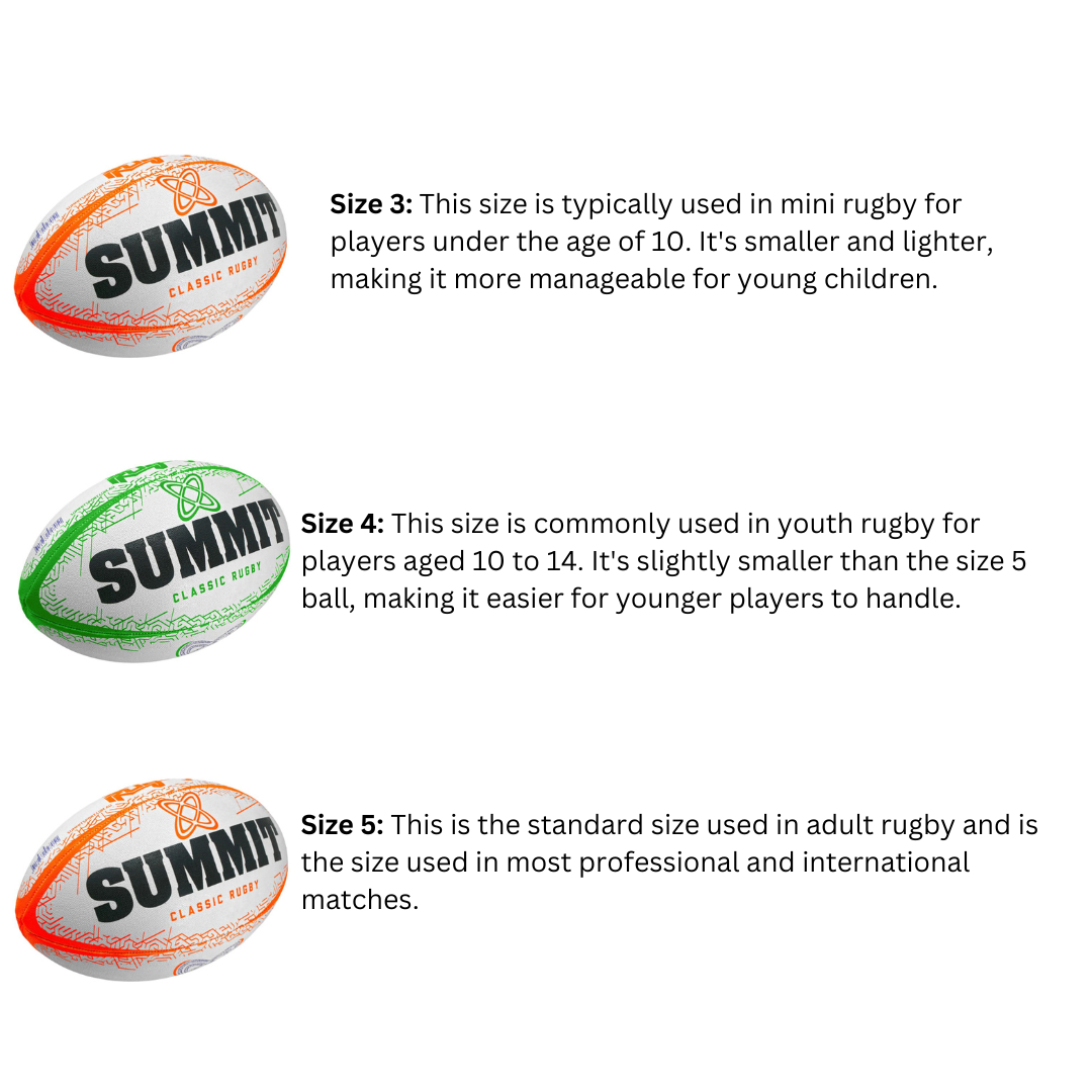 - Size 5: Standard size used in adult rugby.